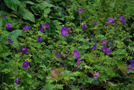 Geranium wlassovianum. Júliustól a fagyokig virágzik. Kb. 60 cm magas és 60-80 cm széles. Ősszel szintén gyönyörűen szineződik a levele.